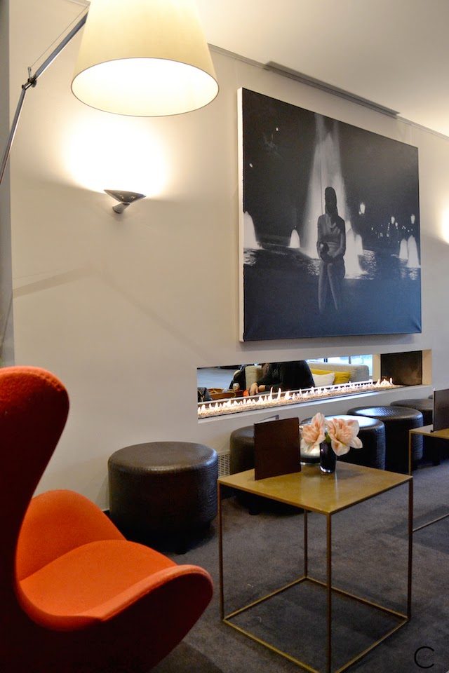 Park Hotel has this nice space right at the entry of the hotel. The long couch with several seats at two sides of the see-through fireplace is very welcoming. Also the good filled bookcase invites you to grab an art book or novel and plop down and cuddle up in one of the Design Egg-chairs. It’s a nice place to stay with your travel mates but also very comfortable when you are traveling alone. That’s a big plus I think.